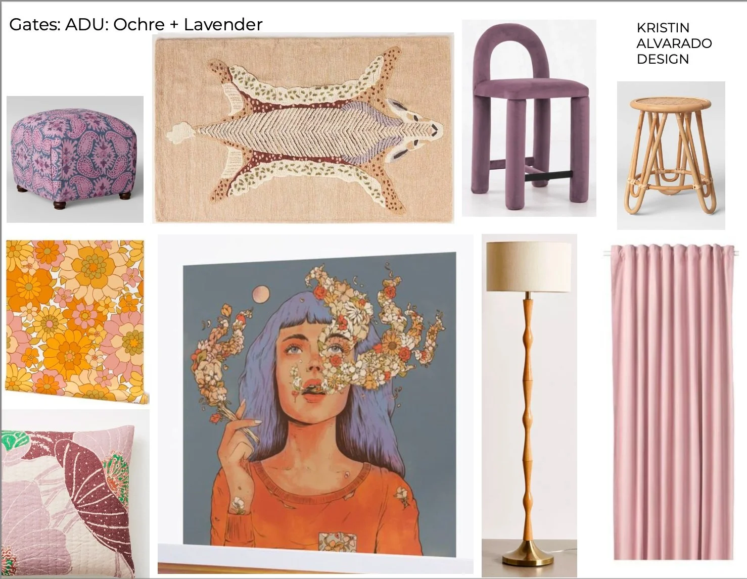 A mood board tells a story visually; incorporating repeated cues, style elements and colors. These are what create a cohesive concept. Sometimes, it is the art that connects all, as seen above. The bold oversized art piece not only speaks to a vibe, it unites the colors, the patterns and the styles of the other items shown.