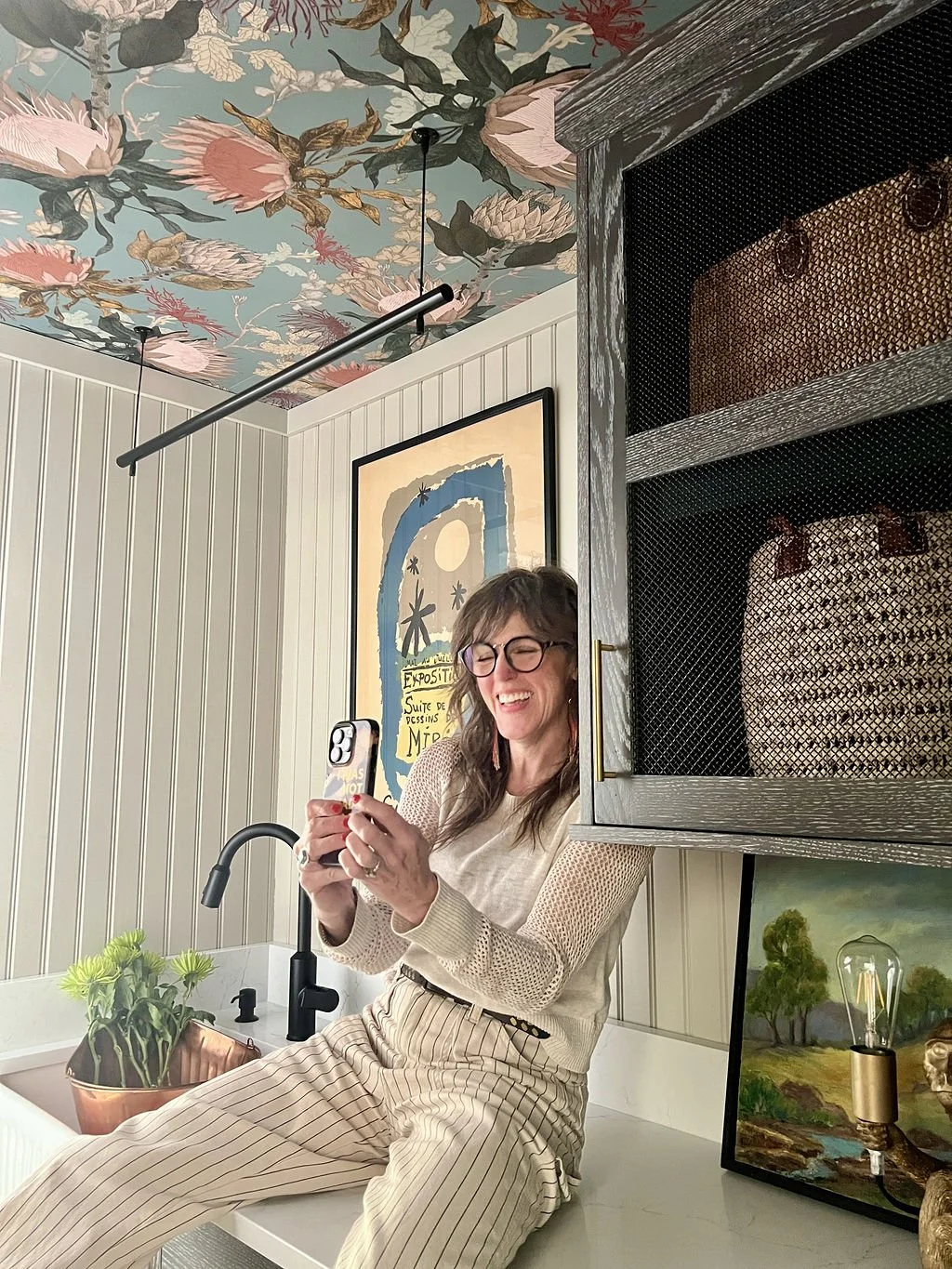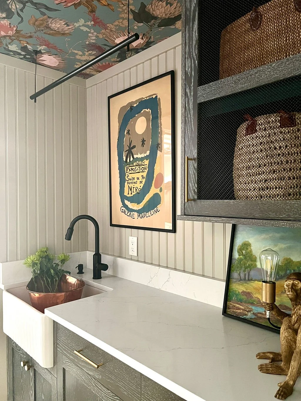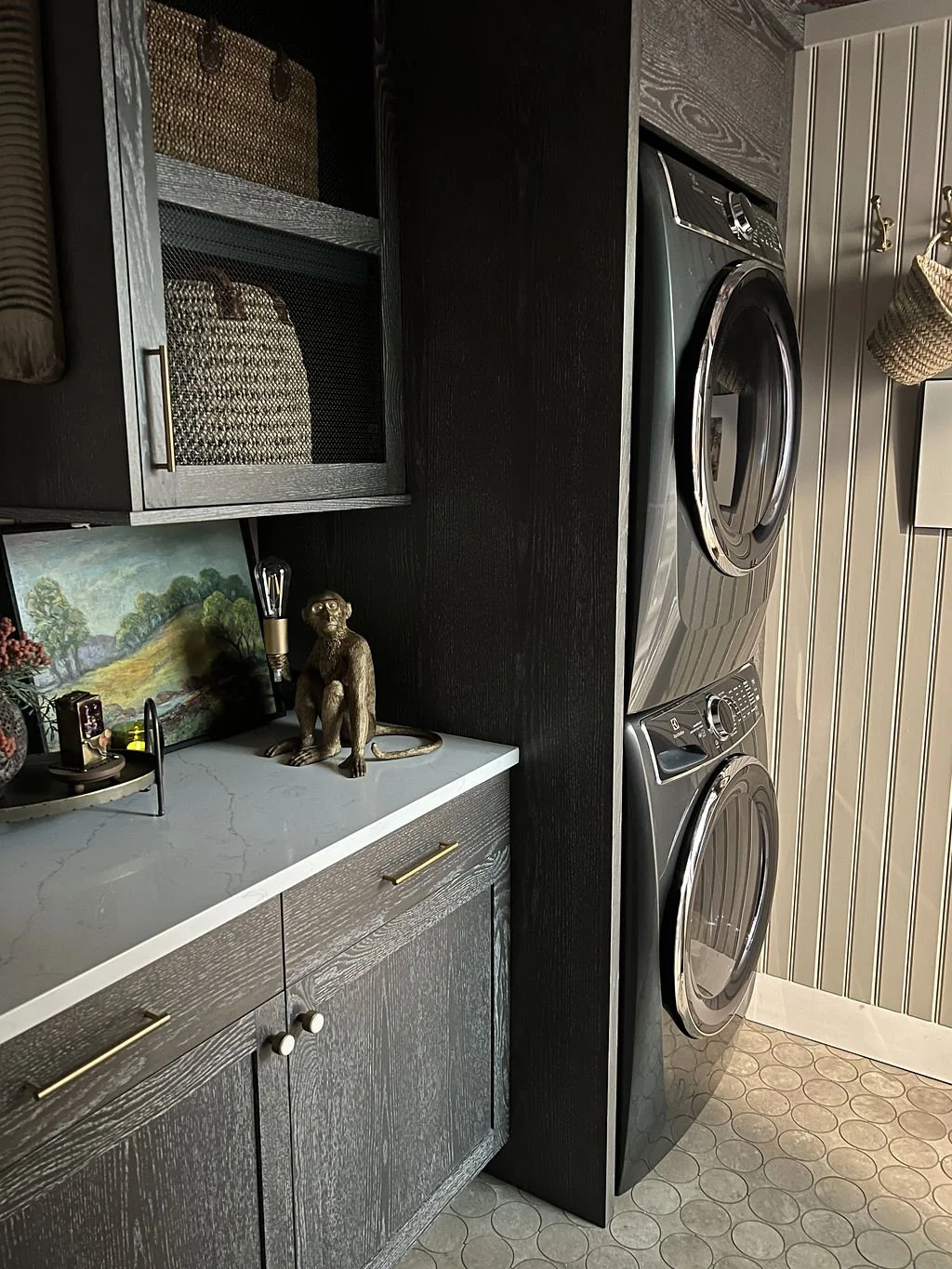 Leanne “hated doing laundry”. As the primary entrance for this couple, the laundry room was an abysmal greeting that didn’t exactly shout “welcome home”! something needed to be done. hard working rooms can provide so much more than just function, they can become positively experiential. When you walk through this lovely space on your way in from the car, there is exuberant beauty; no surface unadorned, no detail spared. I can’t say that Leanne now loves doing laundry, but allan does!! it’s an all around win:)