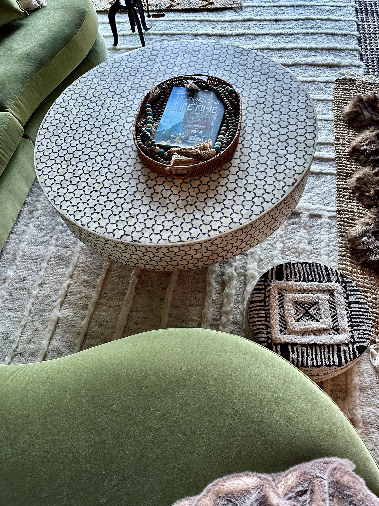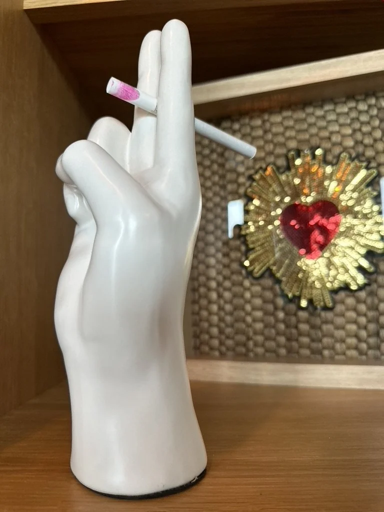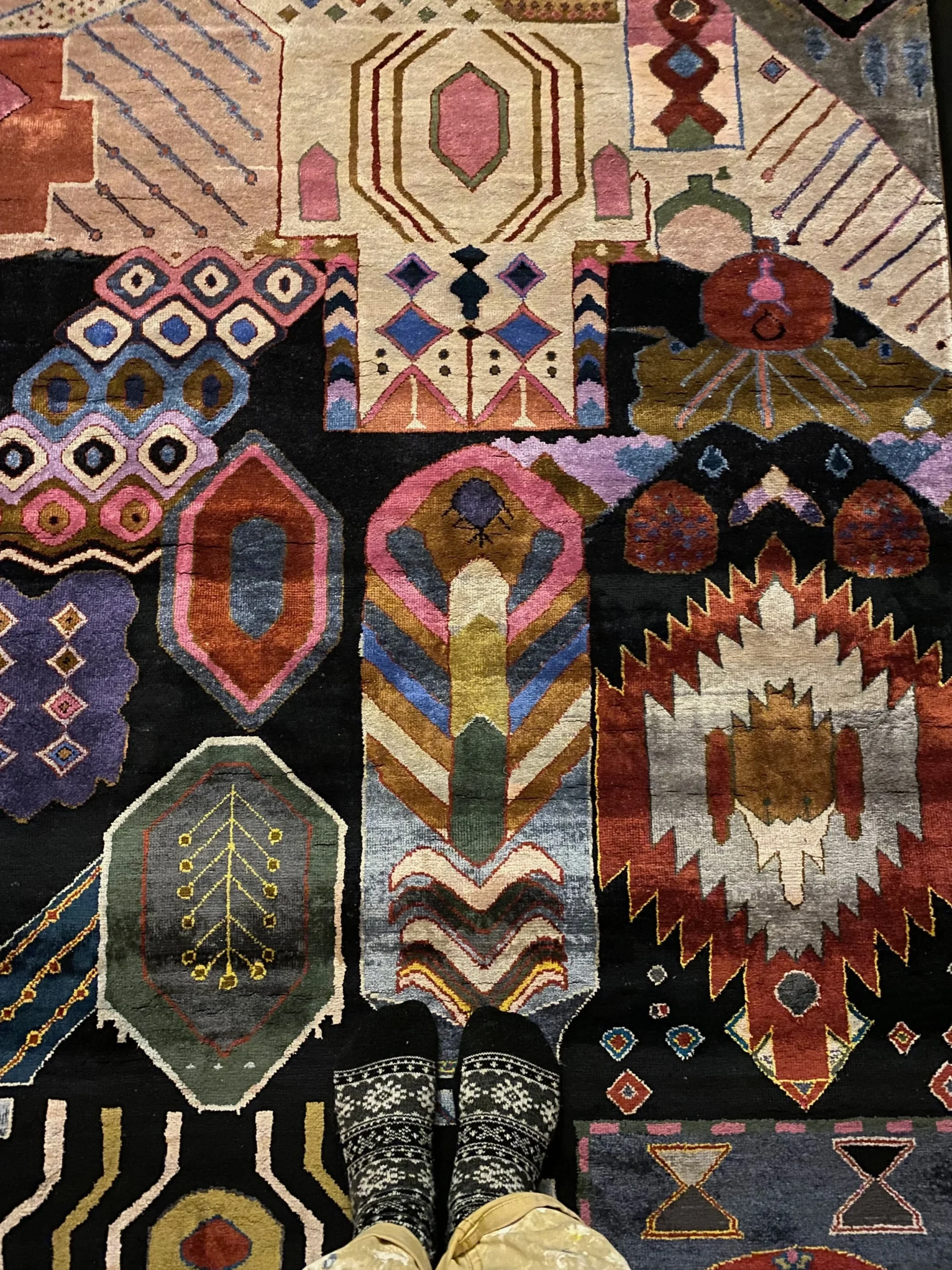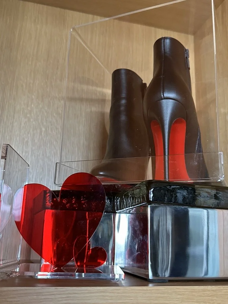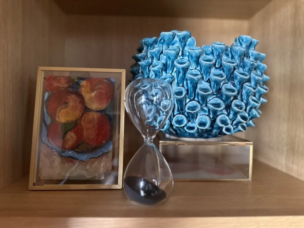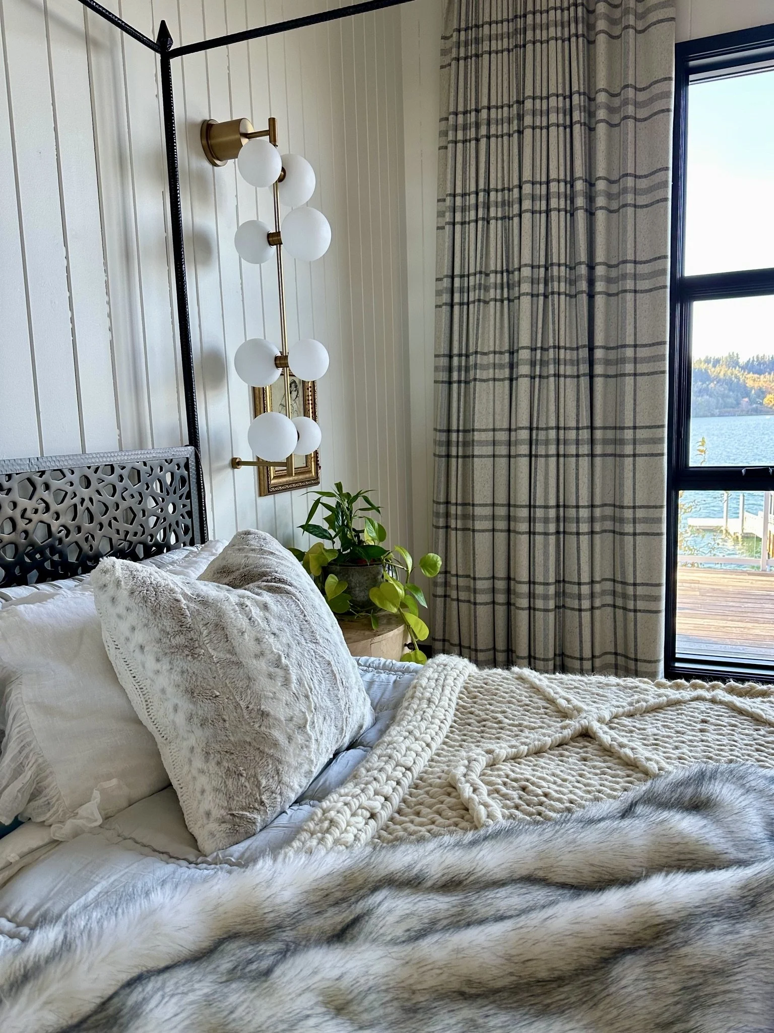 What began as a simple paint consultation for the primary bathroom quickly evolved into a full-scale, whole-house transformation. Every surface was reimagined—from walls to ceilings, floors to furnishings. Wide plank reclaimed flooring grounds the home, while 10-foot metal-and-glass barn doors create dramatic passages between spaces. Enormous glass chandeliers punctuate rooms with lighthearted grandeur, while custom furniture, draperies, rugs, and original artwork infuse personality throughout. Bold, playful wallpapers and layered textures bring energy and visual delight to every corner. Architectural details—including arched doorways, a river rock fireplace, and a soapstone-clad fireplace in the primary suite—add depth and tactile richness. In the powder room, a pink and brown onyx floating vanity serves as a sculptural centerpiece, combining luxury with utility, while in the primary bath, the massive birds-and-flowers wallpaper mural makes us feel Lilliputian by comparison. The design balances modern interventions with material-driven warmth, resulting in a home that is visually captivating, playful, and richly layered. And the cherry on top? A 7-foot-tall giraffe holding an Italian crystal chandelier in its mouth.