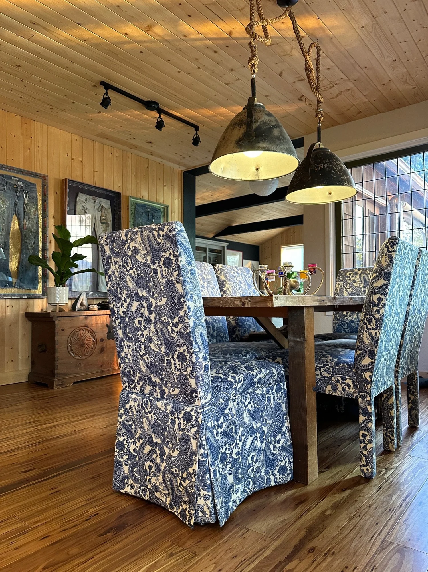 New stewards of a quirky cottage called upon “the spirit of Lucy” to guide them in making it their own. This remodel balances reverence for the cottage’s heritage with a creative, maximallist sensibility. The interplay of deep color, natural pine ceilings, and collected textures establishes a moody yet welcoming tone. The attic’s new primary suite blends rustic materials with contemporary comfort, while the adaptive reuse of salvaged elements in the kitchen reinforces the home’s sustainable, lived-in character. The integration of a recording studio ties the design back to the owners’ artistic lives, creating a space that feels both timeless and deeply expressive—a modern continuation of the home’s long, storied history.